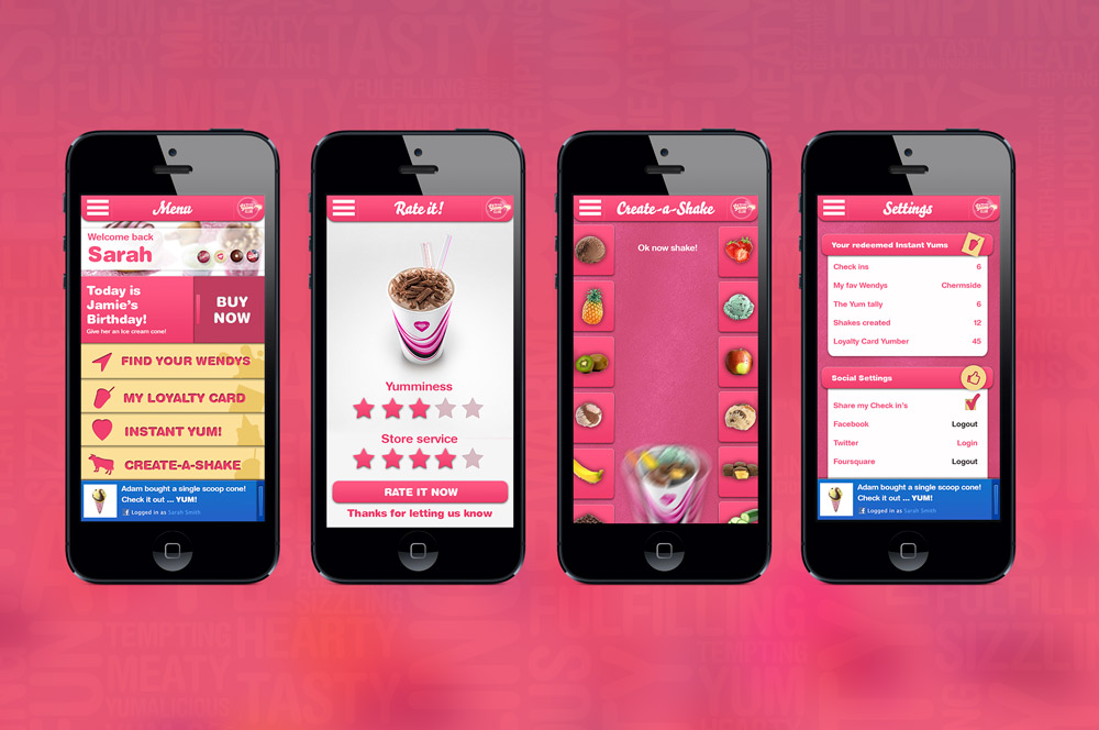 A concept design for Wendys app that would help them manage and create customer data.